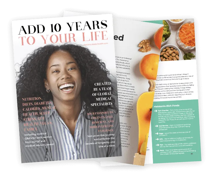 Explore our free ebook, “Add 10 Years to Your Life,” authored by our esteemed medical advisory board. It’s a compilation of professional and medical advice to help you make impactful changes for your overall health and well-being.